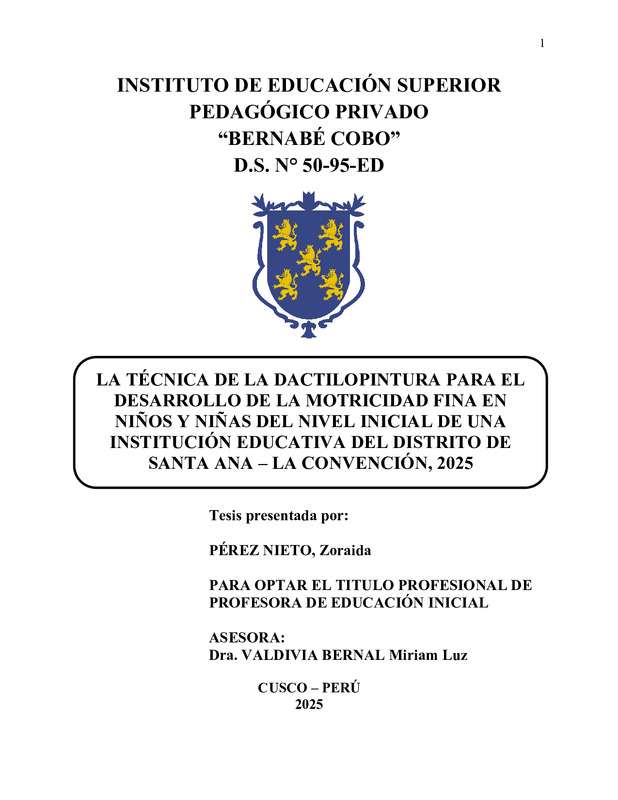 LA TÉCNICA DE LA DACTILOPINTURA PARA EL DESARROLLO DE LA MOTRICIDAD FINA EN NIÑOS Y NIÑAS DEL NIVEL INICIAL DE UNA INSTITUCIÓN EDUCATIVA DEL DISTRITO DE SANTA ANA – LA CONVENCIÓN, 2025