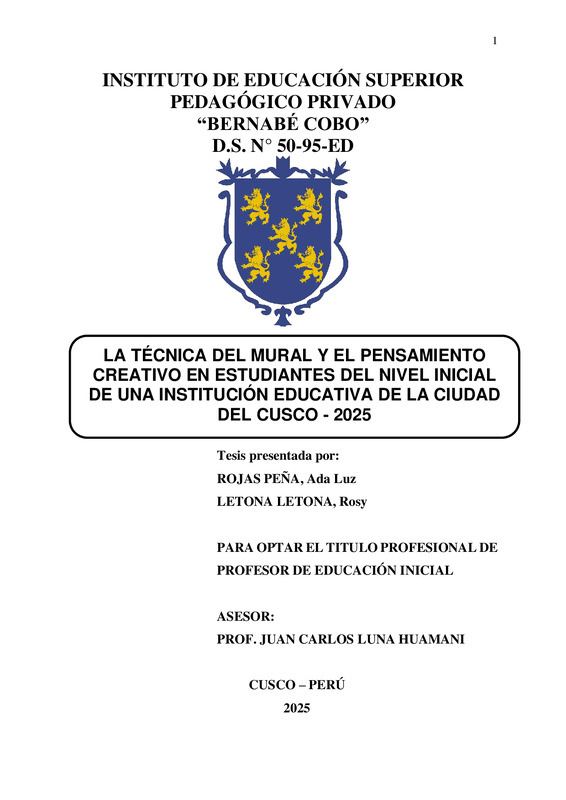 LA TÉCNICA DEL MURAL Y EL PENSAMIENTO CREATIVO EN ESTUDIANTES DEL NIVEL INICIAL DE UNA INSTITUCIÓN EDUCATIVA DE LA CIUDAD DEL CUSCO - 2025