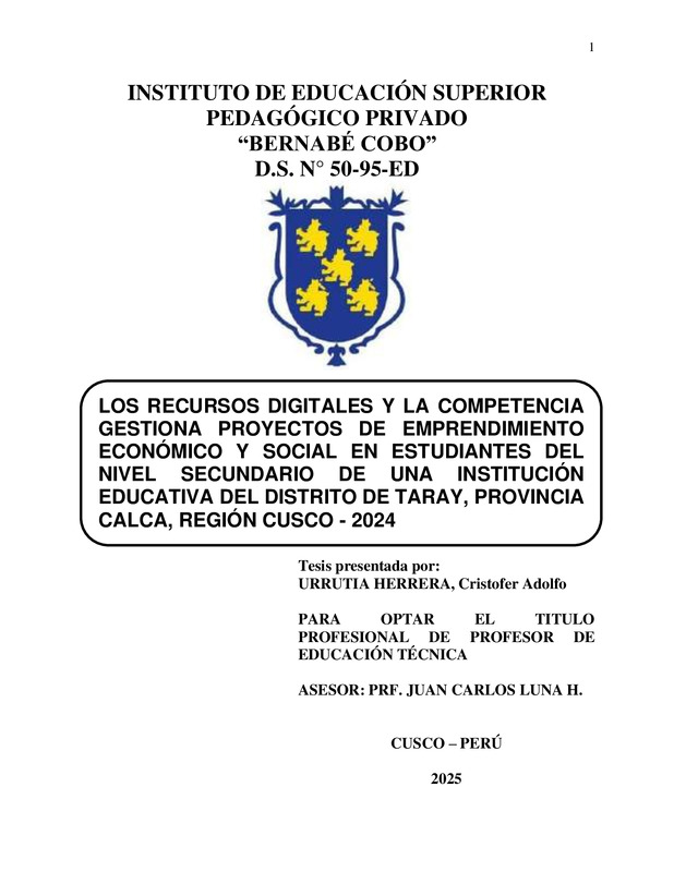 LOS RECURSOS DIGITALES Y LA COMPETENCIA GESTIONA PROYECTOS DE EMPRENDIMIENTO ECONÓMICO Y SOCIAL EN ESTUDIANTES DEL NIVEL SECUNDARIO DE UNA INSTITUCIÓN